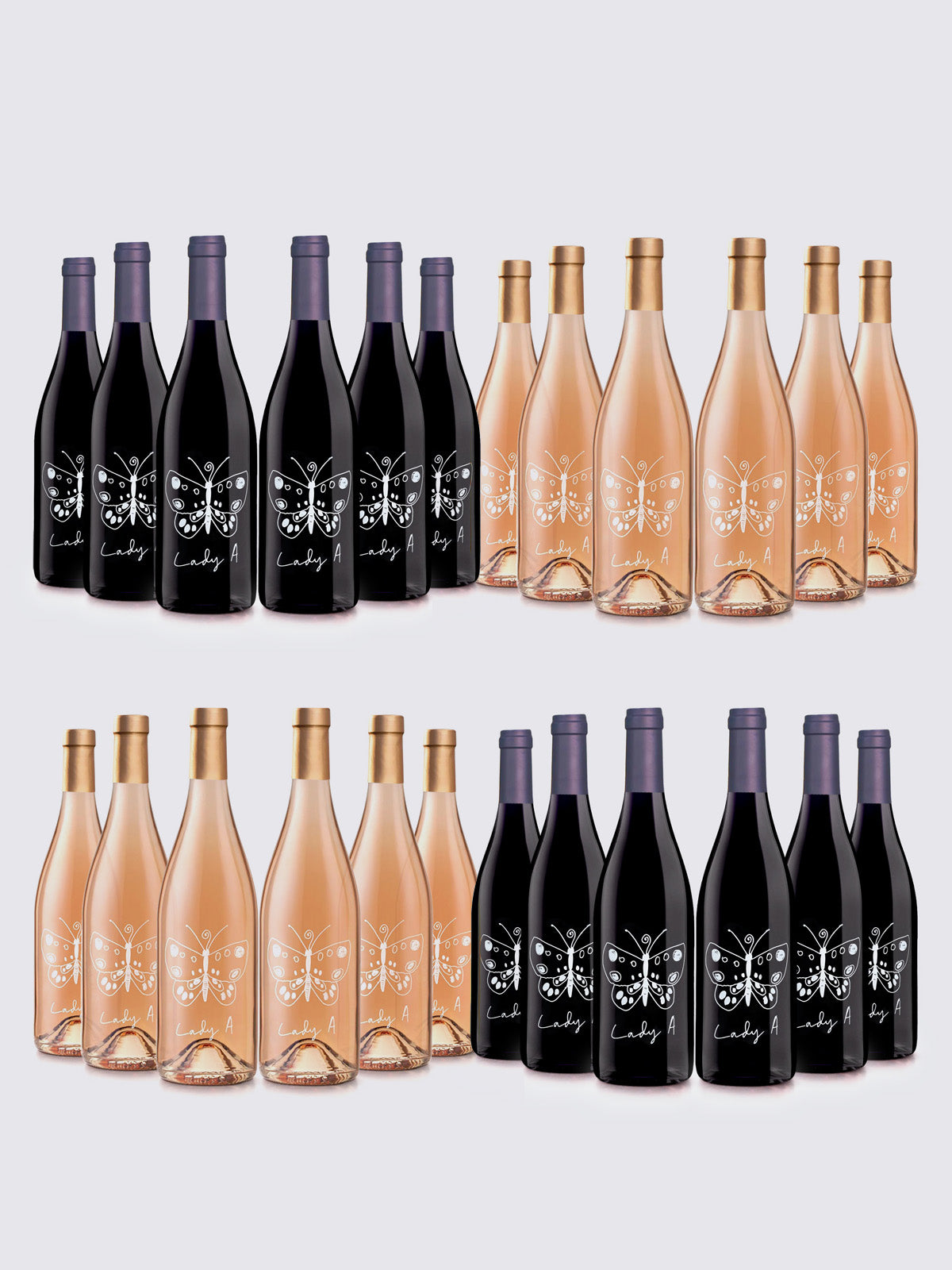 Featuring 12 bottles of Lady A Rosé and 12 bottles of Lady A Red.